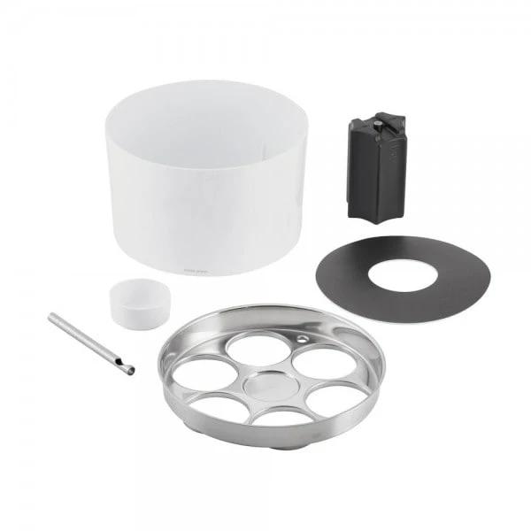 Avec accumulateur de froid, coupelle de récupération de capsules et décapsuleur, diamètre : 230 mm, hauteur : 150 mm.