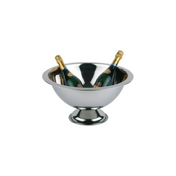Rafraîchisseur de bouteilles de Champagne en acier inoxydable poli-miroir, bord poli mat.