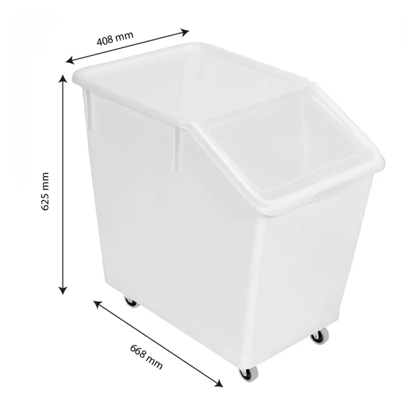 Garantit le stockage des ingrédients dans des conditions d’hygiène parfaites (avec son couvercle). Fond totalement lisse sans visserie apparente. Coins arrondis et parois intégralement lisses pour faciliter le nettoyage. Le couvercle s’ouvre avec un rabat et reste en position ouverte rabattu, pour faciliter l’utilisation du bac et garder les mains libres. Visibilité du contenu, couvercle fermé, grâce au couvercle transparent. Chape inox, 4 roues en PA avec bandage caoutchouc pour faciliter le déplacement et la manutention. Chape inox recommandée en environnements humides (aucune altération des roulements même en présence d?eau). Bac emboitable pour optimiser le stockage. Bac disponible également avec différents coloris de couvercles au choix ou avec des patins à la place des roues. Une seule et même gamme de couvercles pour fermer les bacs à ingrédients 40 L et 80 L. Bac conçu en PEHD légèrement transparent, permettant d’apercevoir le contenu et le niveau de matière.