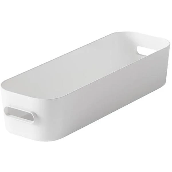 Notre bac de rangement salle de bain est conçu pour s’adapter à toutes les configurations. Grâce à ses poignées intégrées, il est facile à manipuler et à déplacer. Son design compact (dimensions : 28,8 x 9,3 x 6 cm) lui permet de s’insérer dans les tiroirs, les étagères ou même sur le rebord du lavabo. Sa surface lisse facilite le nettoyage, garantissant une hygiène parfaite au quotidien.