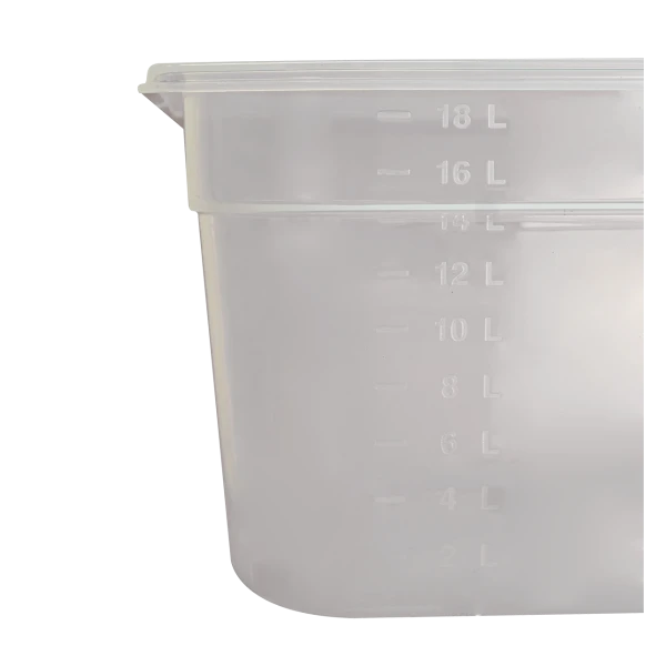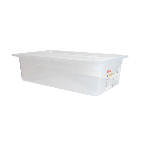 Lot de deux bacs GN 1/1 en PP (polypropylène) avec couvercles. Trois hauteurs disponibles au choix : 100 mm, 150 mm ou 200 mm. Fabriqués à partir de polypropylène de qualité alimentaire, ces bacs sont conçus pour résister à une utilisation intensive et offrir une durabilité exceptionnelle. Fond arrondi sans zone de rétention pour un nettoyage facilité. Taille GN 1/1 adaptée aux supports gastronormes et autres équipements de cuisine standards. Contenants idéals pour le stockage, l’organisation des aliments ou le transport. Matière transparente (bac et couvercle) pour une visibilité du contenu facilité. Graduations disponibles sur le côté du bac pour mesurer aisément la contenance. Etiquette IML inaltérable intégrée sur chaque bac pour garantir le respect des normes HACCP et la traçabilité de chaque préparation.