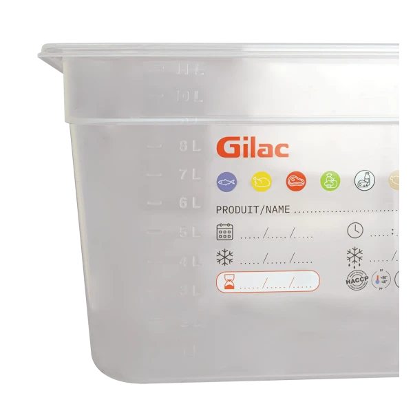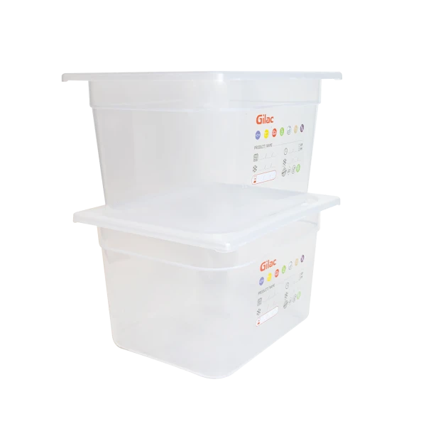 Lot de deux bacs GN 1/2 en PP (polypropylène) avec couvercles. Trois hauteurs disponibles au choix : 100 mm, 150 mm ou 200 mm. Fabriqués à partir de polypropylène de qualité alimentaire, ces bacs sont conçus pour résister à une utilisation intensive et offrir une durabilité exceptionnelle. Fond arrondi sans zone de rétention pour un nettoyage facilité. Taille GN 1/2 adaptée aux supports gastronormes et autres équipements de cuisine standards. Contenants idéals pour le stockage, l’organisation des aliments ou le transport. Matière transparente (bac et couvercle) pour une visibilité du contenu facilité. Graduations disponibles sur le côté du bac pour mesurer aisément la contenance. Etiquette IML inaltérable intégrée sur chaque bac pour garantir le respect des normes HACCP et la traçabilité de chaque préparation.
