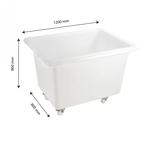 Bac Grand Volume 500 L – 4 Roues Pivotantes Dont 2 Avec Freins – Blanc