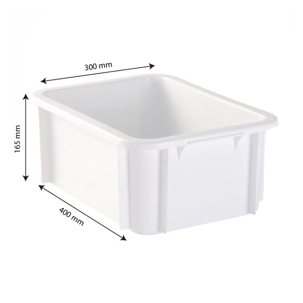 Bac plastique alimentaire 400 x 300 rectangulaire. Pour le stockage en température négative ou positive et le transport des matières premières. Design ne présentant aucune zone de rétention. Lavable en machine. Couvercle coiffant pour une meilleure hygiène disponible en option. Empilable sans couvercle.Compatible avec tous les socles 4 et 6 roues GILAC.