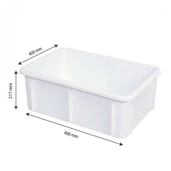 Bac plastique alimentaire 600 x 400 rectangulaire. Pour le stockage en température négative ou positive et le transport des matières premières. Design ne présentant aucune zone de rétention. Lavable en machine. Couvercle coiffant pour une meilleure hygiène disponible en option. Empilable sans couvercle. Compatible avec tous les socles 4 et 6 roues GILAC.