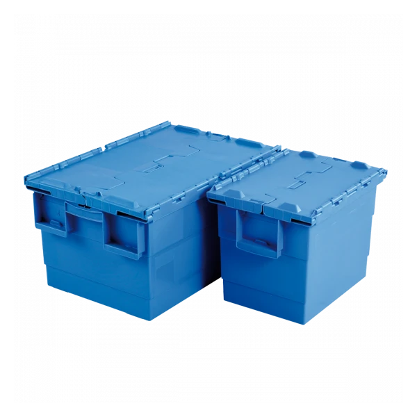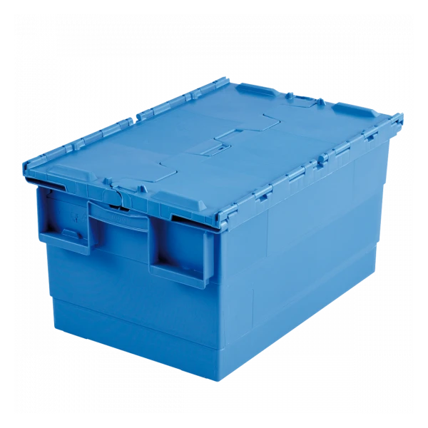 Bac avec couvercle « crocodile » intégré. Idéal pour les traiteurs. Empilable fermé et emboîtable lorsque le couvercle est ouvert.