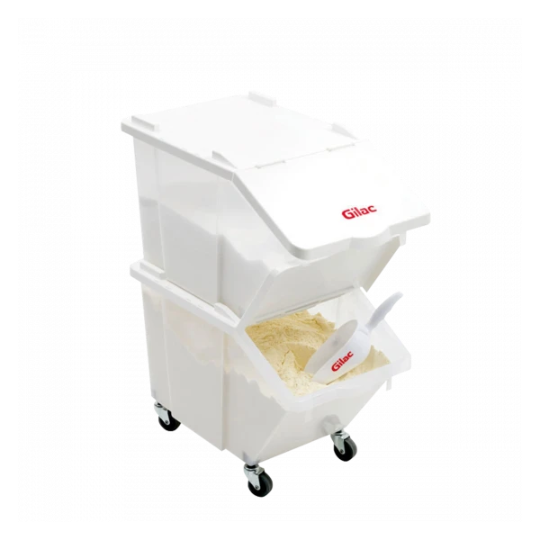 Lot de 2 bacs à ingrédients empilables avec couvercles et emboîtables sans couvercle. Grande facilité d’accès. Le bac supérieur permet de bloquer le couvercle en position ouverte pour faciliter l’utilisation du bac à ingrédients. Bacs conçus en polypropylène légèrement transparent, permettant d’apercevoir le contenu et le niveau de matière.