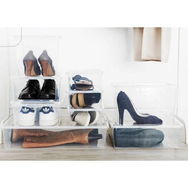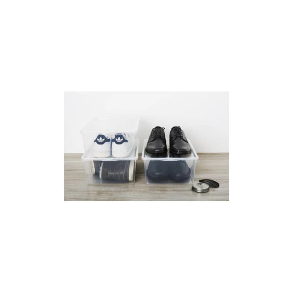 L’inscription « Shoes » est imprimée en différentes langues dans une écriture graphique, empilable pour ranger toutes votre collection de chaussures !