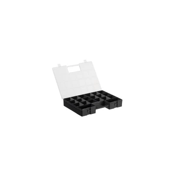 Boîte d’assortiment LUXOR HOBBY BOX noire avec 8 casiers fixes et 12 séparateurs amovibles, pour obtenir jusqu’à 20 compartiments..