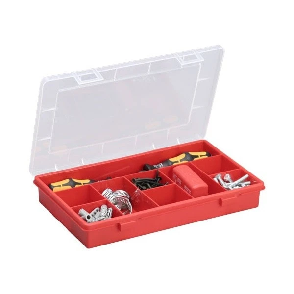Boîte d’assortiment « EuroPlus Basic », taille: 29/9 rouge, en polypropylène solide et transparent, 9 compartiment répartition fixe.