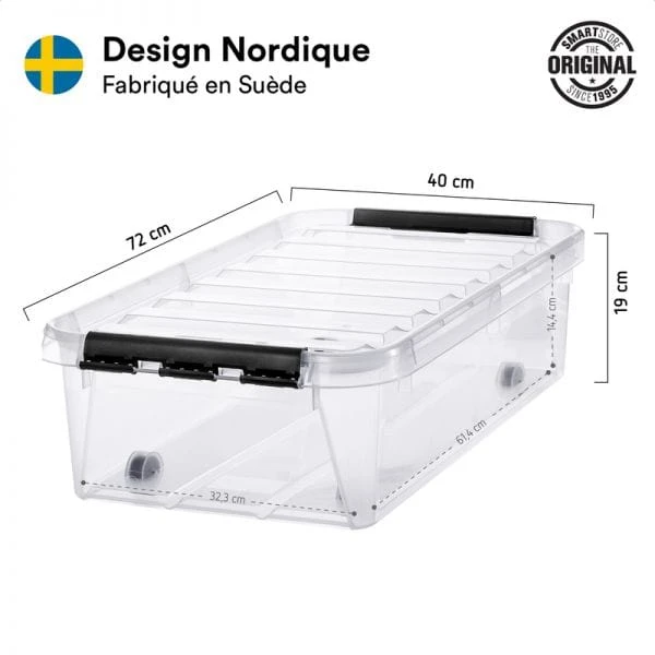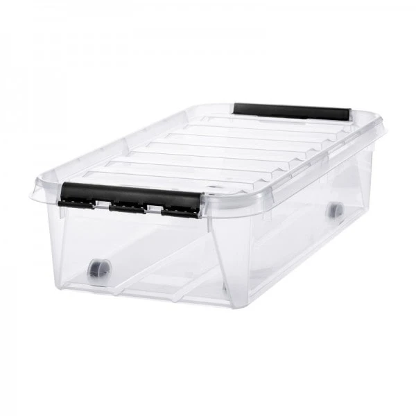 Transparente avec 4 roulettes pour un rangement sous le lit ou dans placard.