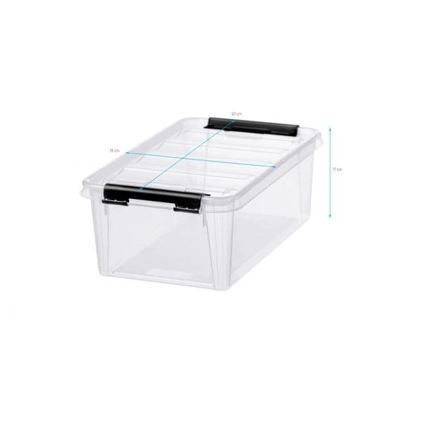 boîte de rangement transparente avec couvercle et clips de fermeture