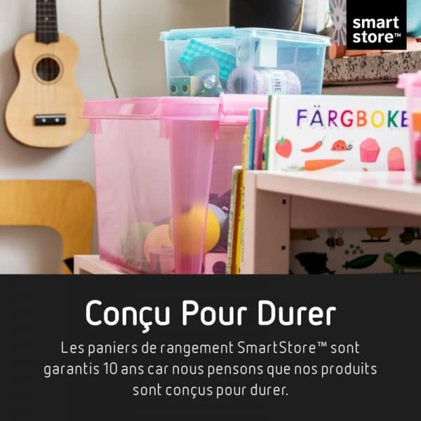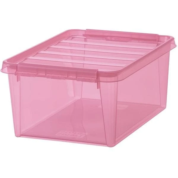 Boîte de rangement transparente rose, avec couvercle de la gamme COLOUR 15 Smartstore.