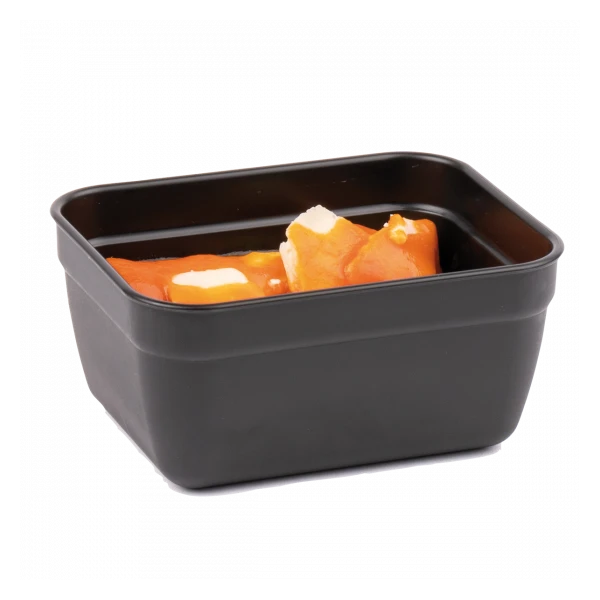 Boite hermétique en lot de 10. Parfaitement adaptée à la restauration sur place et idéale en boîte de consigne réutilisable, pour vos services de livraison ou de click and collect. Conserve les saveurs et préserve des odeurs extérieures. Le couvercle garantit une étanchéité parfaite de la boite et permet de les empiler. De couleur transparente il offre une excellente visibilité du contenu. La couleur noir mat du corps des boites apporte une touche haut de gamme à vos contenants. Existe en plusieurs formats adaptés à chaque besoin. Personnalisable sur demande avec votre logo pour une quantité de 1000 pièces minimum. Dimensions données pour une boîte à l’unité.