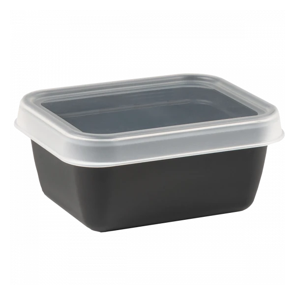 Boîte Hermétique Rectangulaire Noire 0,4 L + Couvercle Transparent – Lot De 10