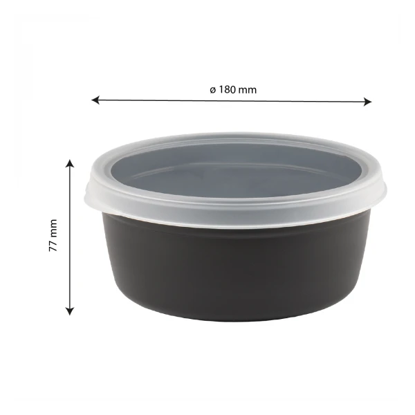 Boîte Hermétique Ronde Noire 1,2 L + Couvercle Transparent – Lot De 10