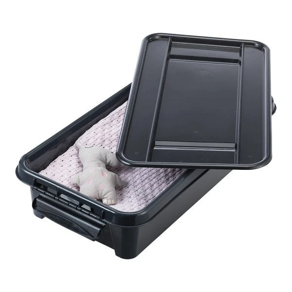 Boîte de rangement Plate Noire Plastique Recyclé 31 litres