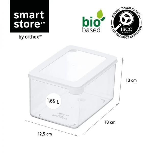 Boite alimentaire hermétique qui garde les aliments au sec. Grâce à sa transparence et à la fenêtre dans le couvercle, il est facile de voir ce qui s’y trouve.
