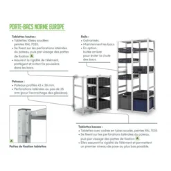 Pour l’ajout d’un niveau supplémentaire, il est nécessaire de commander 2 bras pour l’élément de départ, et 1 bras par élément suivant. Important : Vérifiez les capacités de charge maximale de votre structure avant ajout de niveau supplémentaire.