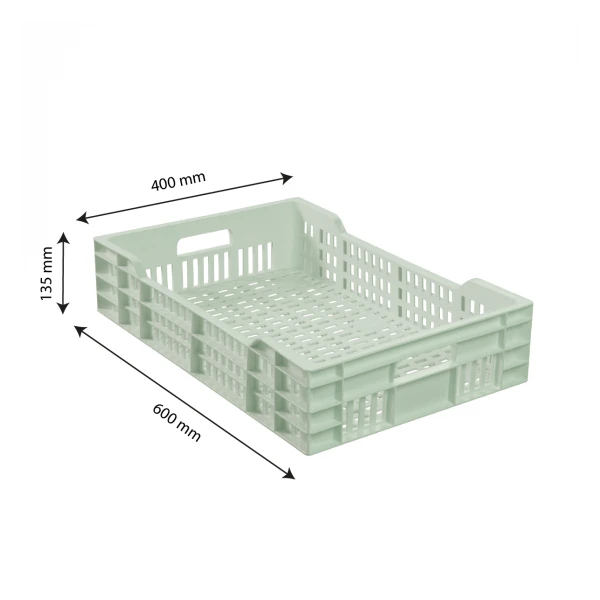 Caisse Ajourée Avec Poignées Empilable 600 X 400 25 L – Vert Amande