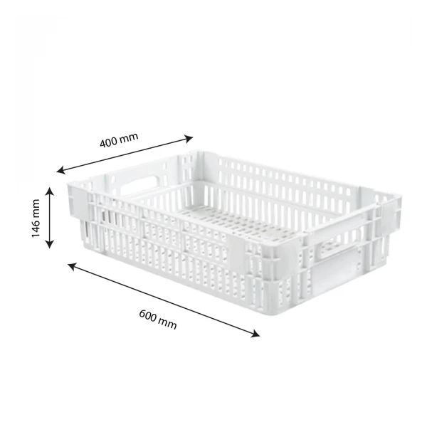Caisse Ajourée Empilable Emboitable 600 X 400 X 145 Mm – 27 L – Blanc