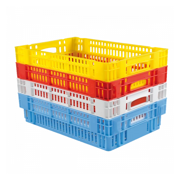 Caisse 600 x 400 ajourée. Idéale en cuisine centrale pour liaison froide. Aération du contenu. Empilable et emboîtable par rotation d’un demi-tour. Ajourages importants qui minimisent le temps de descente en température et facilitent le nettoyage.