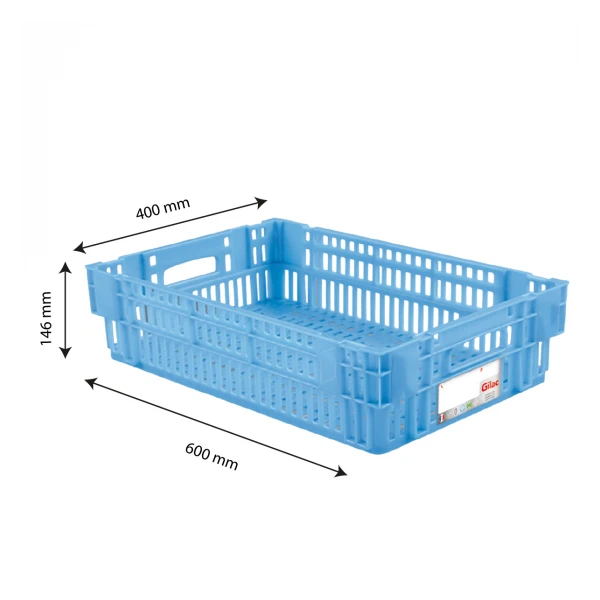 Caisse Ajourée Empilable Emboitable 600 X 400 X 146 Mm HACCP – 27 L – Bleu