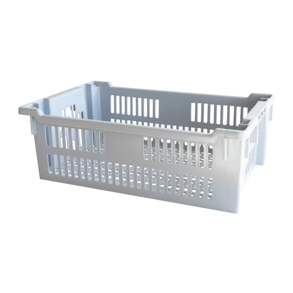 Caisse ajourée 600 x 400 mm en plastique alimentaire (PEHD). Caisse empilable et emboîtable par rotation d’un demi-tour, avec détrompeur. Idéale pour le transport ou en caisse liaison froide. Cette grande caisse ajourée avec poignées de qualité professionnelle sera votre alliée pour longtemps.