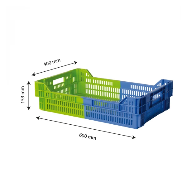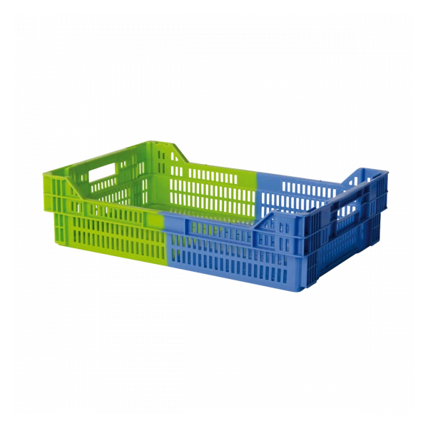 Caisse 600 x 400 ajourée. Empilable et emboîtable par rotation d’un demi-tour. Idéale en cuisine centrale pour liaison froide. Identification rapide grâce au système de bicoloration. Aération du contenu. Ajourages importants qui minimisent le temps de descente en température et facilitent le nettoyage. Identification rapide grâce au système de bicoloration.