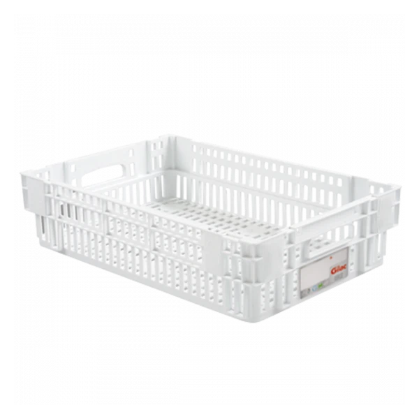 Caisse 600 x 400 ajourée. Idéale en cuisine centrale pour liaison froide. Aération du contenu. Empilable et emboîtable par rotation d’un demi-tour. Ajourages importants qui minimisent le temps de descente en température et facilitent le nettoyage. Caisses disponibles en 5 couleurs HACCP, pour aider à maîtriser les risques sanitaires en appliquant la méthode HACCP. Cartouche d’identification permettant une gestion de la traçabilité et le suivi des stocks. Ce marquage est réalisé par IML : un procédé qui permet de fusionner l’étiquette et la matière plastique durant le moulage par injection pour la rendre inaltérable et réinscriptible (à utiliser avec un marqueur plastique effaçable à l’eau).