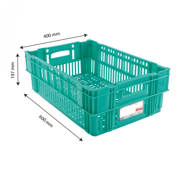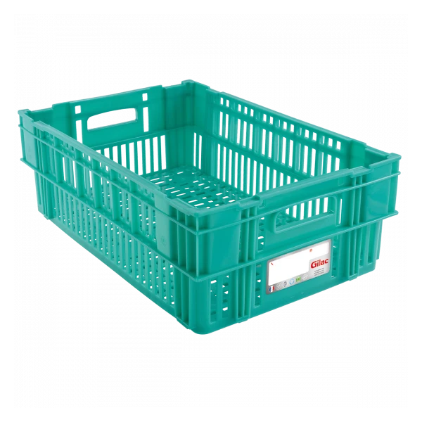 Caisse 600 x 400 ajourée. Idéale en cuisine centrale pour liaison froide. Aération du contenu. Empilable et emboîtable par rotation d’un demi-tour. Ajourages importants qui minimisent le temps de descente en température et facilitent le nettoyage. Caisses disponibles en 5 couleurs HACCP, pour aider à maîtriser les risques sanitaires en appliquant la méthode HACCP. Cartouche d’identification permettant une gestion de la traçabilité et le suivi des stocks. Ce marquage est réalisé par IML : un procédé qui permet de fusionner l’étiquette et la matière plastique durant le moulage par injection pour la rendre inaltérable et réinscriptible (à utiliser avec un marqueur plastique effaçable à l’eau).