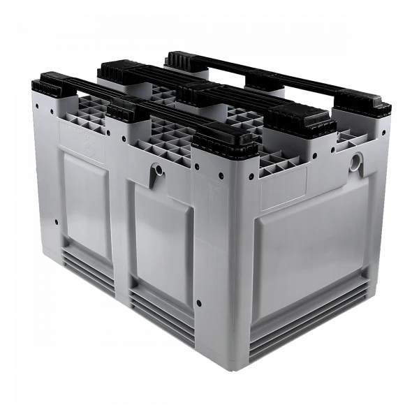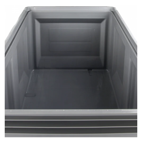 Caisse palette idéale pour stocker et transporter une grande variété de produits volumineux. Caisse palette très robuste avec un faible poids à vide. Excellente stabilité grâce à ses 3 patins/semelles. Volume intérieur environ 10% supérieur aux caisses palettes conventionnelles grâce à sa conception avec des parois convexes. Caisse palette facile à nettoyer grâce aux coins arrondis et à la surface lisse, assurant une hygiène parfaite. – Charge utile : 500 kg – Surcharge : 4500 kg