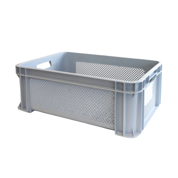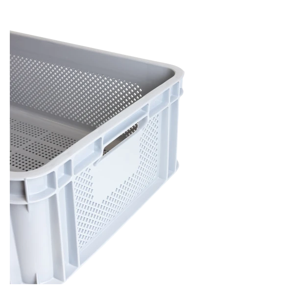 Caisse finement ajourée en plastique alimentaire (PEHD). Caisse renforcée empilable avec poignées idéale pour la manutention en industrie alimentaire. Ses perforations très fines assurent une excellente aération des aliments, même en position empilée. Cette caisse renforcée, de qualité professionnelle, est conçue pour un usage intensif.