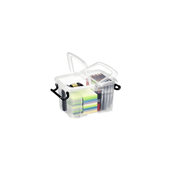 Boîte de rangement strata, 6 litres, transparente en polypropylène, avec couvercle papillon.