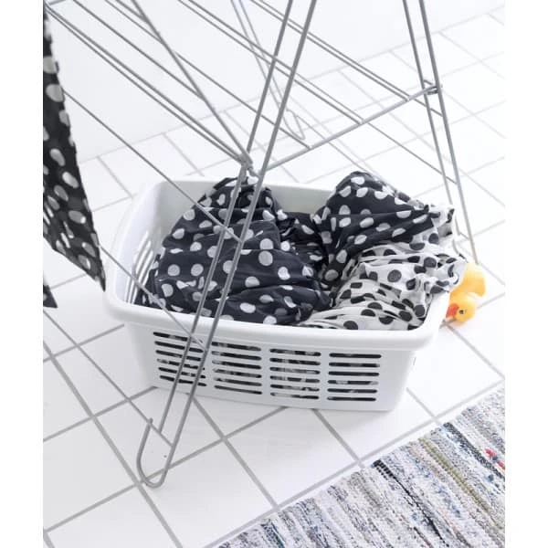 Avec 2 poignées ergonomiques sur les côtés et fentes d’aération tout autour pour aérer le linge humide avant de l’étendre, et éviter les mauvaises odeurs.