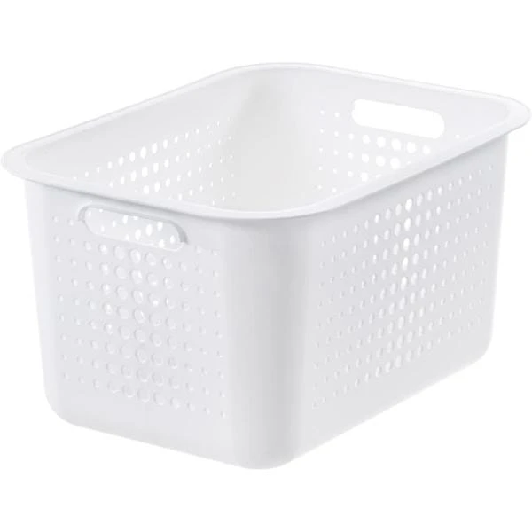 Corbeille avec un élégant motif à trous disponible en blanc ou taupe.
