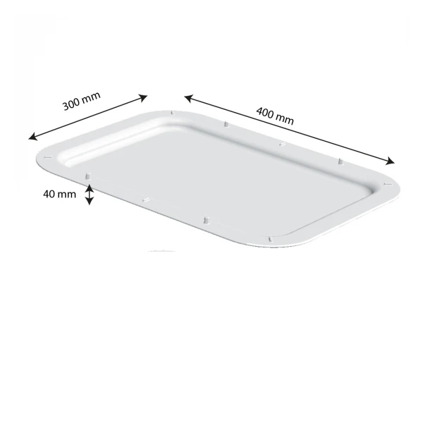 Couvercle pour bac à diviseuse 400 x 300 mm, destiné à la fermentation en panification . S’adapte à tous les process de panification aérobie et anaérobie, notamment la pousse de la pâte en froid ventilé. Empilage stabilisé grâce aux ergots.