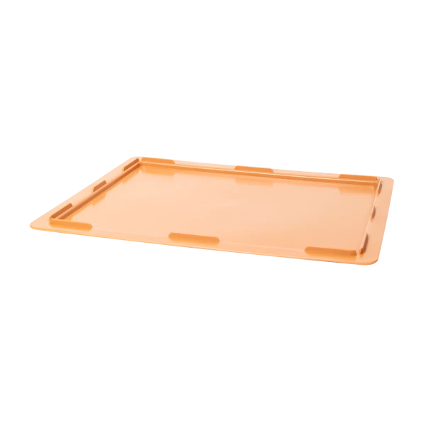 Ce couvercle est conçu pour parfaitement s?adapter au bac à pâtons 400 x 300 mm GILAC. – Le couvercle rectangulaire est doté d?ergots sur le dessus pour assurer une stabilité parfaite si les bacs sont empilés avec couvercle. Aucun risque de glissement involontaire. – Les angles sont arrondis pour assurer un environnement de travail sans risque et éviter la casse en cas de chute sur un angle (argument à vérifier). – Le couvercle 400 x 300 est garanti apte au contact alimentaire. Téléchargez le certificat d’alimentarité de notre couvercle pour bac à pâtons sur cette page. Les tests de migrations réalisés sont l’assurance que ce couvercle est conforme à toutes les normes alimentaires françaises et européennes en vigueur. – Couvercle personnalisable avec votre logo. Un modèle de couvercle clipsable est également disponible pour le bac à pâtons 400 x 300 mm.