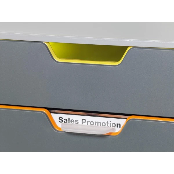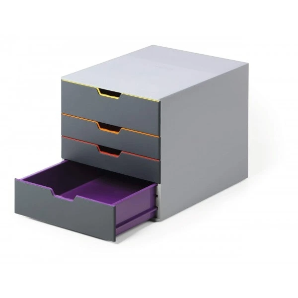 • Module de classement avec 4 tiroirs, design intemporel et couleurs tendances, qui s’intègre aussi bien au bureau qu’en home office