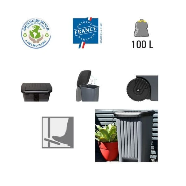 Une poubelle 100 litres pratique, mobile et résistante