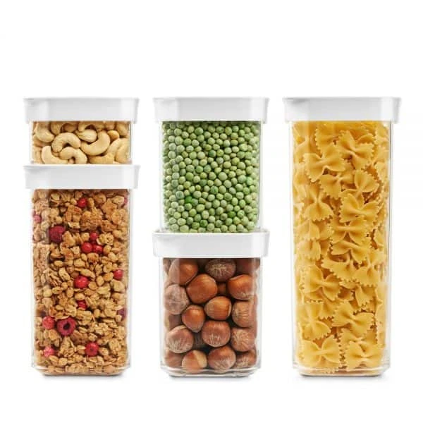 Lot de 5 Boites de Conservation pour aliments secs de la gamme Optima, particulièrement adapté pour le stockage dans les placards de cuisine ou les grands tiroirs.