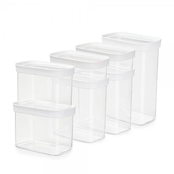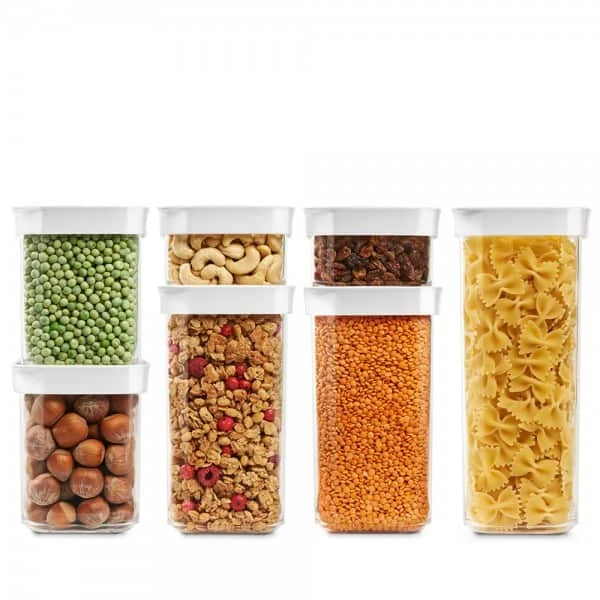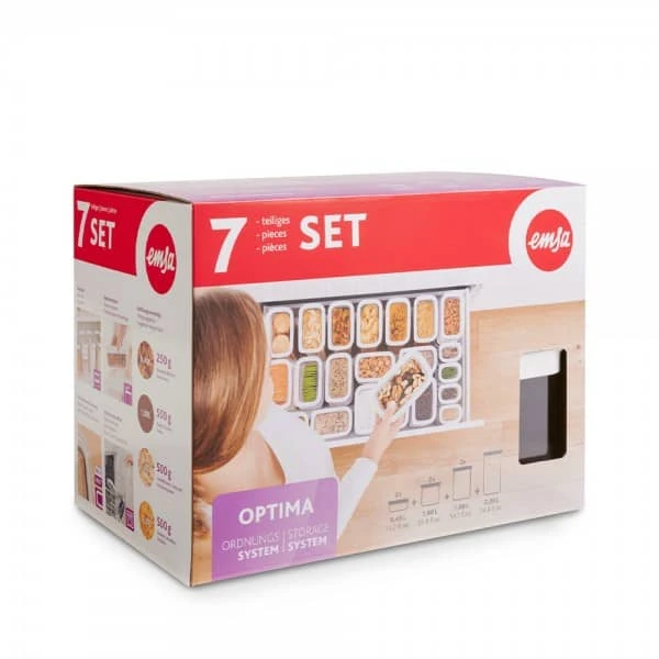 Lot de 7 Boites de Conservation pour aliments secs de la gamme Optima, particulièrement adapté pour le stockage dans les placards de cuisine ou les grands tiroirs.