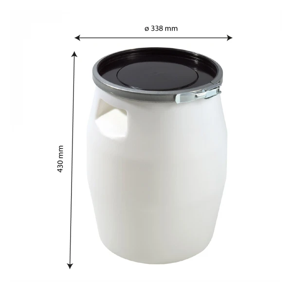 Fût plastique certifié contact alimentaire. Adapté à un grand nombre d’utilisations (saumurage, macération, …) dans le transport et le stockage des produits alimentaires liquides ou solides. Homologation par test de migration globale et spécifique. Parfaite protection du contenu qui est à l’abri de toute contamination grâce au couvercle étanche. Facilement manipulable et ouverture totale.