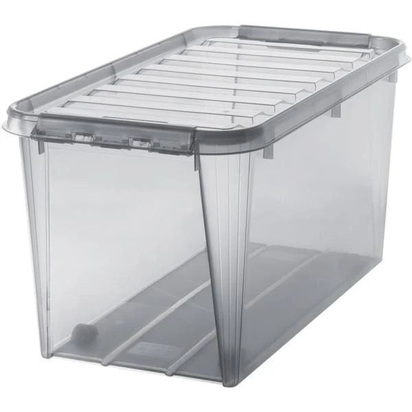 Grande Boîte de rangement grise transparente avec roulettes 70 litres Colour Smartstore