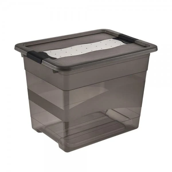 Boîte de rangement « cornelia » 24 litres : boîte transparente avec couvercle clips anthracite.
