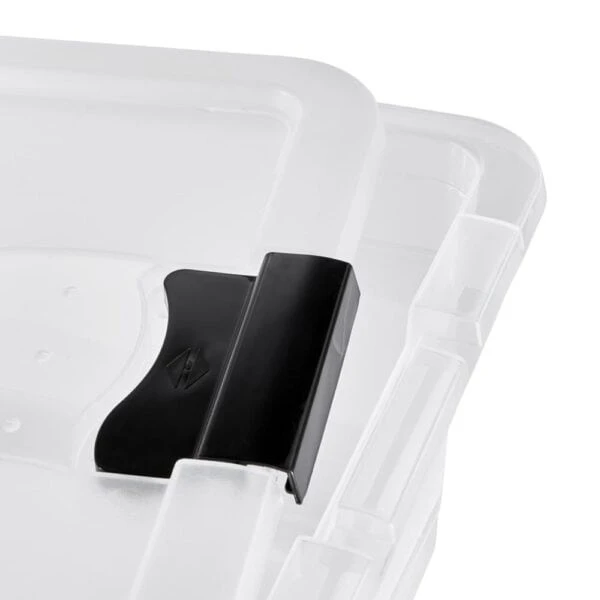 Le couvercle peut être fermé grâce aux clips sur les côtés. Les boîtes sont empilables et antidérapantes.