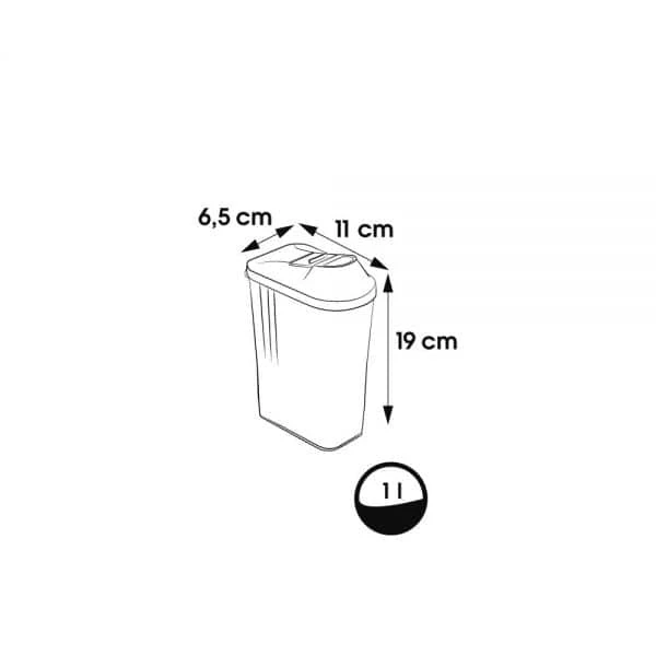 – Dimensions : 6,5 cm de longueur, 11 cm de profondeur et 19 cm de hauteur. Ces dimensions compactes permettent de ranger la boîte facilement dans un placard ou sur une étagère, tout en offrant une capacité suffisante pour une utilisation quotidienne.