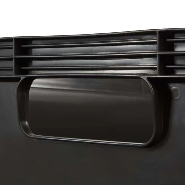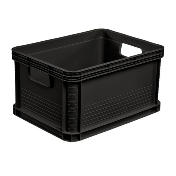 Caisse de rangement de qualité industrielle empilable, très stable, robuste et résistant aux rayures.