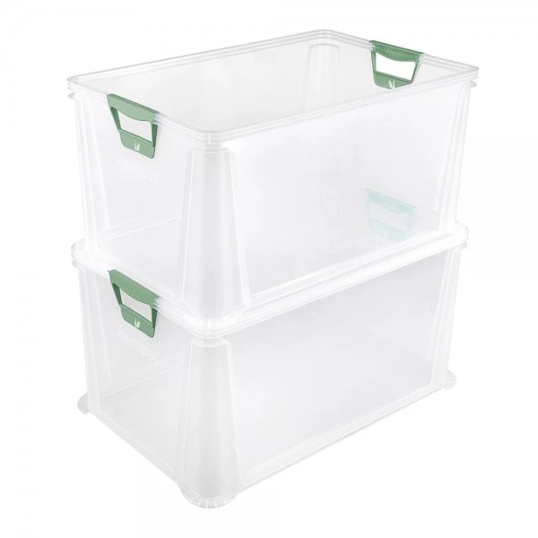 • s’empile de façon sécurisée et en permettant un gain de place (avec et sans couvercle)