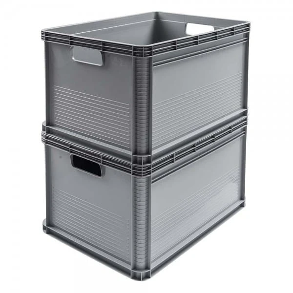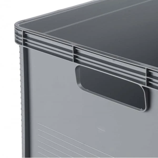 Caisse empilable, qui permet un gain de place dans la cuisine, le cellier, le garage ou dans les placards.